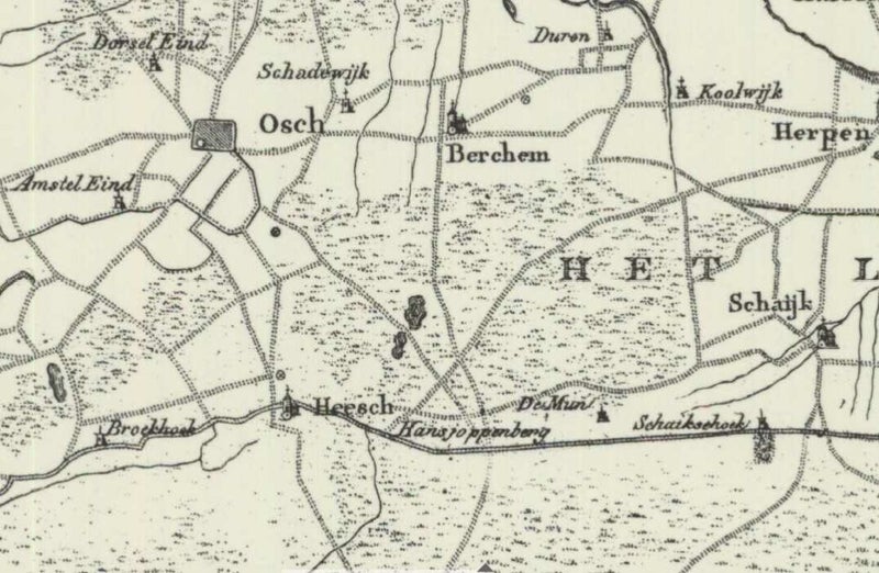 Afbeelding 2: Detail van een kaart van de omgeving van Berghem, gemaakt door C.R.T. Krayenhoff (1758-1840).